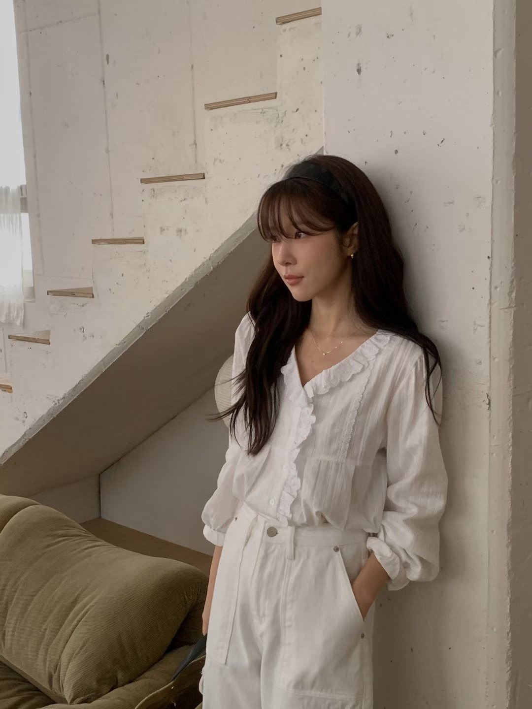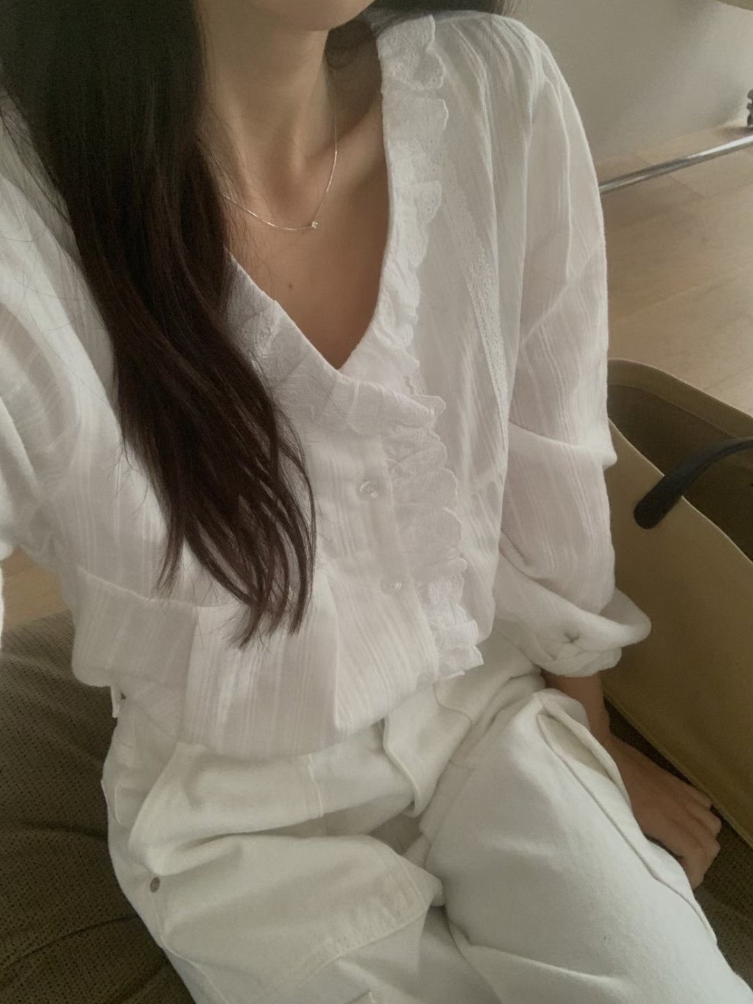 |現貨| 優雅花邊V領襯衫